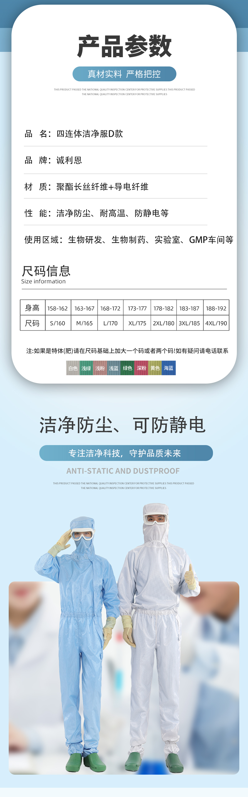產品名稱:四連體潔凈服D款-側開拉鏈