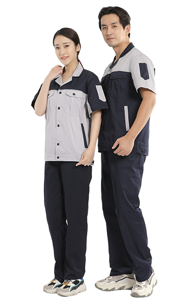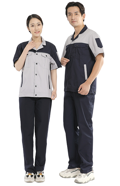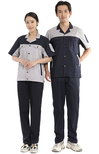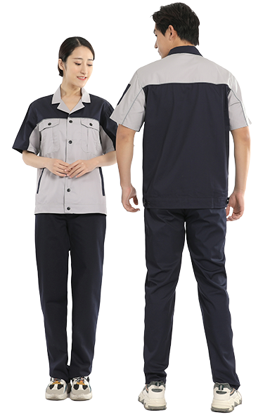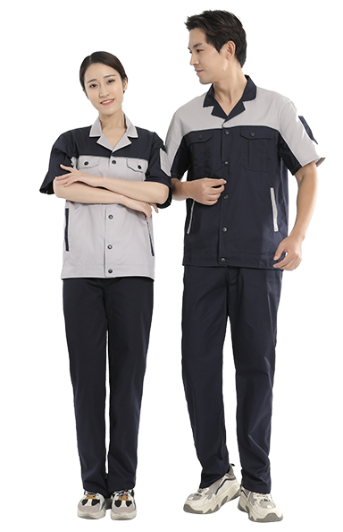 款式:翻折領厚款工作服,領口采用拉鏈和暗扣設計款左前胸釘胸袋,袖口塑料按扣,活動自如。衣擺兩側釘小袢調節,松緊有度不束縛。長褲子兩側開口袋,腳口卷邊